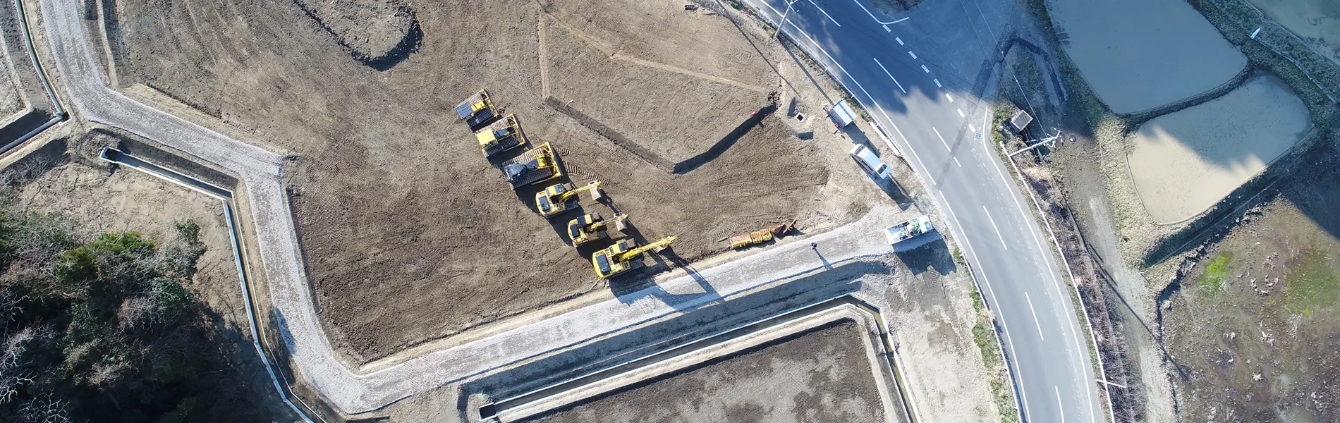 ドローンを有効活用することにより、現場の地形・進捗を正確に把握します。空中写真測量を用いた出来高管理を行っています。